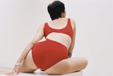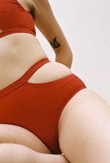 Another variation of the Sade Brief in swimwear. The same asymmetrical cut out that highlights the beautiful space between your waist and hip.