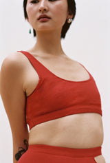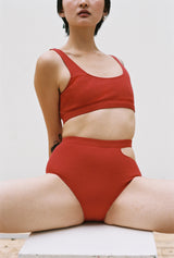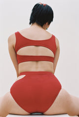 Wenchu wears size Small, paired with Sade Brief in Pomegranate.