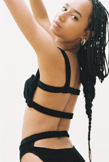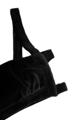 Wan Top, square neck with two straps at the back, in a velour texture. Swap over leggings to a pair of high waist trousers, and some jewellery. Date 1 done.