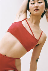Kirin Top comes from the same family as the G-Tang Edits. The diagonal front strap is meant to look like a binding that was ripped off from the bra top. Another great one for low-v tops.