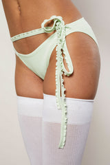 Low waist brief with lettuce edge straps. Customise the way you'd like to wear with the long tie-around straps. Complete the look with Angel Bralette. Available in Mint & Black