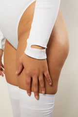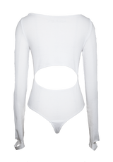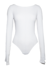 The Long Sleeve, Thong style Bodysuit is a great layering piece. With a high neckline, cut out at the back, thong style snap button fastening for convenience. Available in White, Black and Almond.