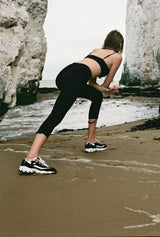 Poppy wears size Small, paired with G-Tang Swim Top in Black.