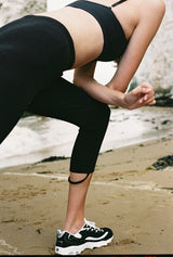 These high waist leggings matches the G-Tang Top. Drop straps at the cuff. Great for dance, yoga or running errands.