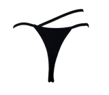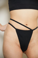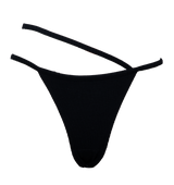 Cotton Rib Thong with thin elastic side straps and a decorative front strap. Perfect for everyday. Available in Black & White.